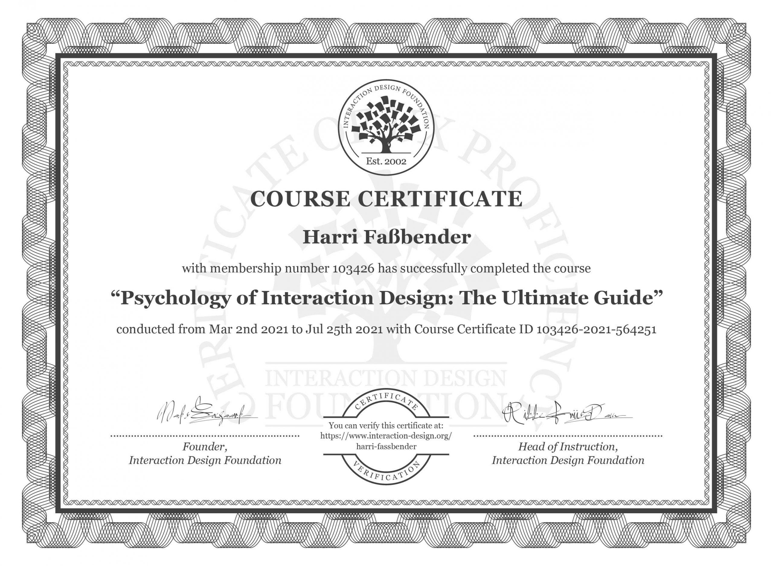 - UI/UX-Design: IDF – „Psychology of Interaction Design“ (certificate)